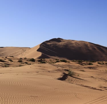 Further south lies M'Hamid El Ghizlane, the gateway to the Erg Chigaga dunes. This region is more remote and significantly less developed than Merzouga. Reaching the dunes often requires off-road travel, and the surrounding landscape feels more open and less structured. There are fewer camps and fewer visitors, and the overall experience is quieter and more isolated. It is generally chosen by travellers who want a less curated and more remote version of the desert.
